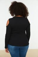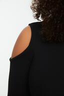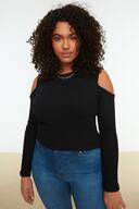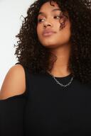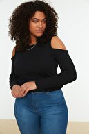 Siyah Bisiklet Yaka Cutout Detayli Örme Bluz TBBSS22AF0045