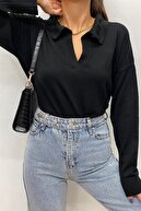 Kadin Siyah Polo Yaka Basic Kazak BSRPOLO