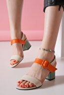 Kadin Renkli Toka Detayli Topuklu Ayakkabi Bejmint 170494IRFA0030