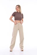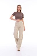Kadin Bej Genis Paca Palazzo Yuksek Bel Pantolon BKL00000100