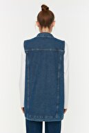 Koyu Mavi Gomlek Yaka Cep Detayli %100 Pamuk Denim Yelek Ceket TCTAW22CK0006