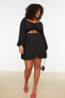 Siyah Cut Out Detayli Dokuma Elbise TBBSS22AH0101